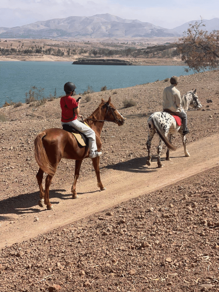 Just 30 minutes from Marrakech, enjoy a 3‑hour guided horseback ride on Arab‑Barb horses through forests, along a lake, and across desert‑mountain trails. Includes transfers, mint tea break, and scenic landscapes.